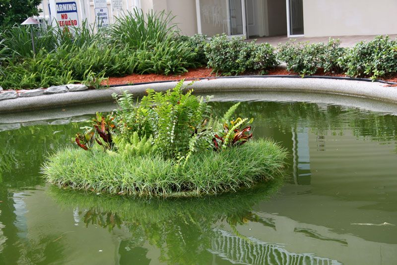 Декоративный плавающий остров с густой травяной растительностью. Очищает воду, украшает водоем и поддерживает экобаланс. Простое и эффектное решение для ландшафтного дизайна.