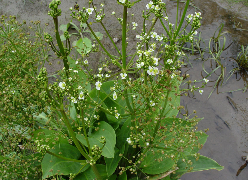 Прибрежное растение с широкими листьями, напоминающими подорожник. Частуха подорожниковая цветет нежными белыми цветами и подходит для оформления прудов.